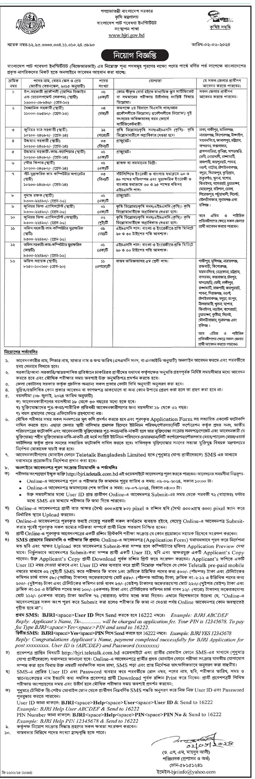 Bangladesh Jute Research Institute Job apply link is http://bjri.teletalk.com.bd/applicant/index.php Read this full details about the BJRI job circular Online Application Process, application fee, Download Application Form:
