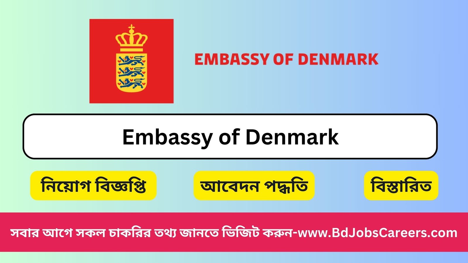 Well, as per process to check the Denmark Embassy Job Circular 2025 and other job circular Info such as Denmark Embassy Job Vacancy, Denmark Embassy Job Opportunities, Embassy of Denmark in Bangladesh, ঢাকায় ডেনমার্ক দূতাবাসে চাকরির বিজ্ঞপ্তি ২০২৪, Bangladesh Embassy Denmark Job Notice, Job Openings at the Embassy, Embassy of Denmark Job Circular 2025 from BD Jobs Careers. So, why late, just apply today!
