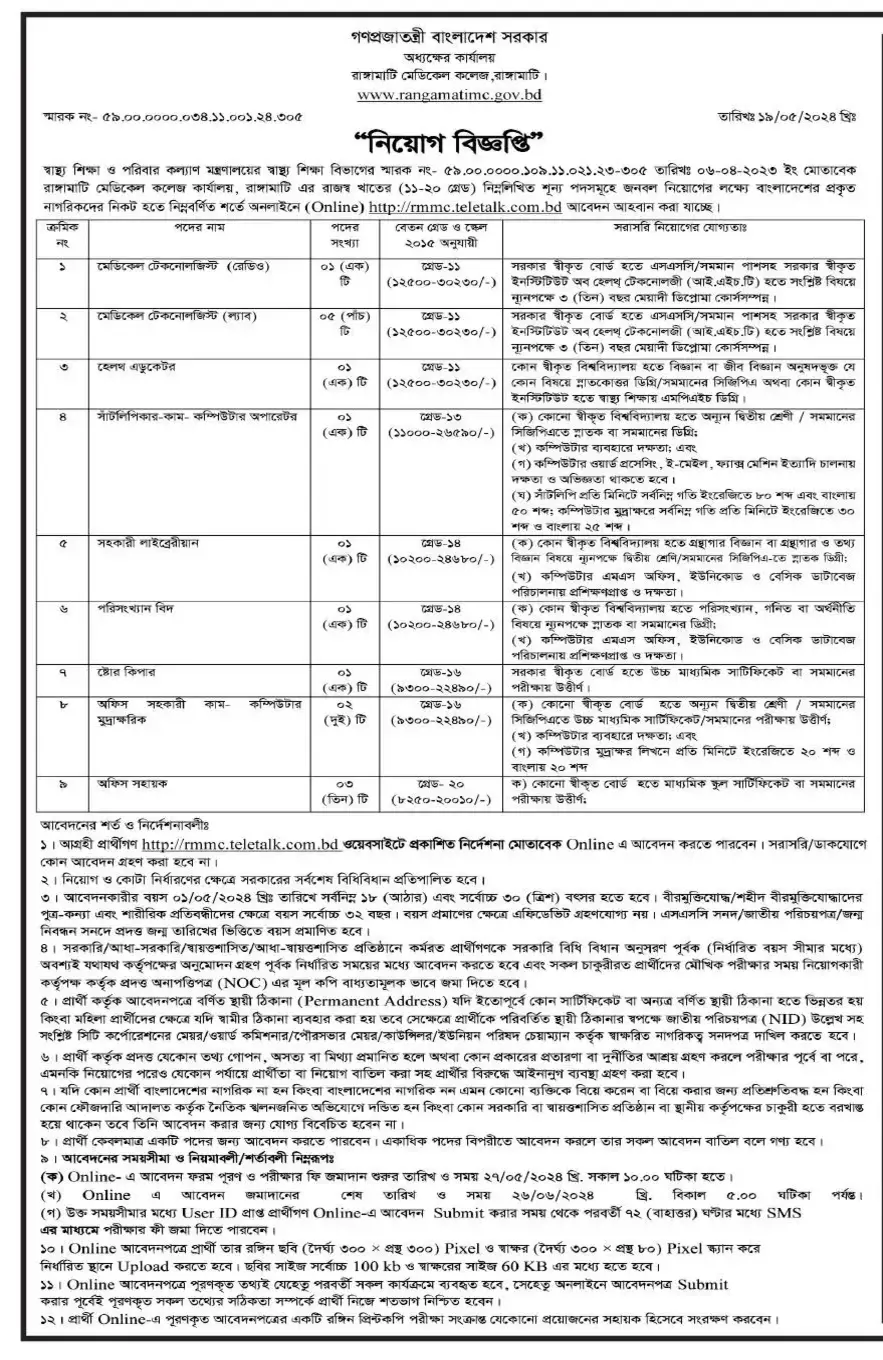 Apply Submit Site: http://rmmc.teletalk.com.bd/