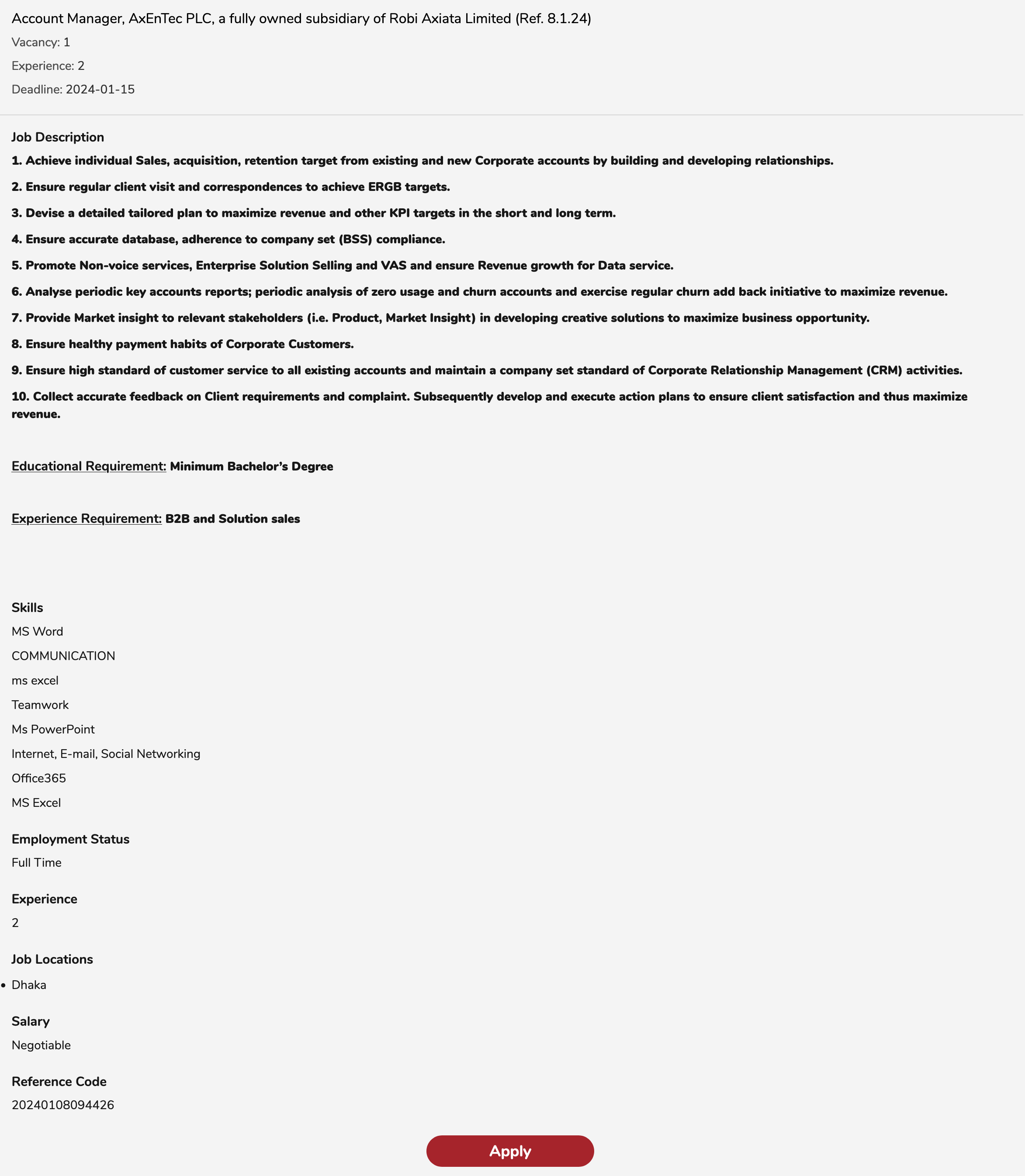 | Job Location | Anywhere in Bangladesh |